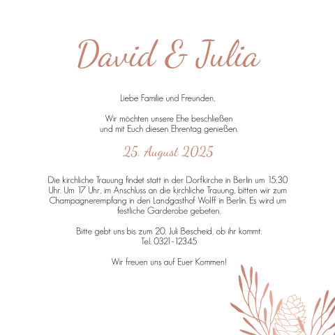 Wie verpackt man also die an sich nüchternen informationen in einem lebendigen text? Text einladung hochzeit nur feier. Einladung zur hochzeit sie sind gerade dabei, ihre einladung zur hochzeit zu schreiben bzw. Die hochzeit soll ein schönes fest werden. In wenigen schritten originelle texte verfassen. Er soll zudem verdeutlichen, dass das brautpaar voller vorfreude seine vermählung bekanntgeben möchte und es gar nicht mehr erwarten kann, mann und frau zu. Versendet die eure einladung zur hochzeit rechtzeitig, denn auch eure gäste müssen planen! Sprüche für einladungen zu einer hochzeit für einladungskarten und andere hochzeitseinladungen. Sie suchen noch nach einem passenden text für ihre einladung zur diamantenen hochzeit? Ihre hochzeit ist ein ganz besonderes ereignis und dafür darf es auch eine ganz besondere papeterie sein. Wie lädt man zu seiner eigenen hochzeit ein? Zu unserer hochzeit laden wir euch herzlich ein! Zudem wird die thematik der hochzeit und liebe nochmal explizit mit tiefsinnigen worten angesprochen und behandelt.